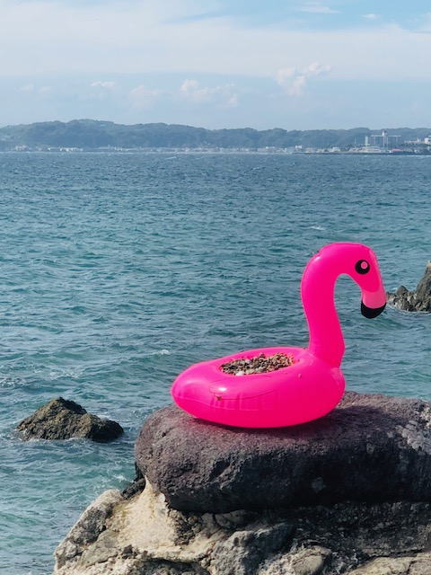 そこはもう夏の賑わいは無くbeach cleanをしている方がいました